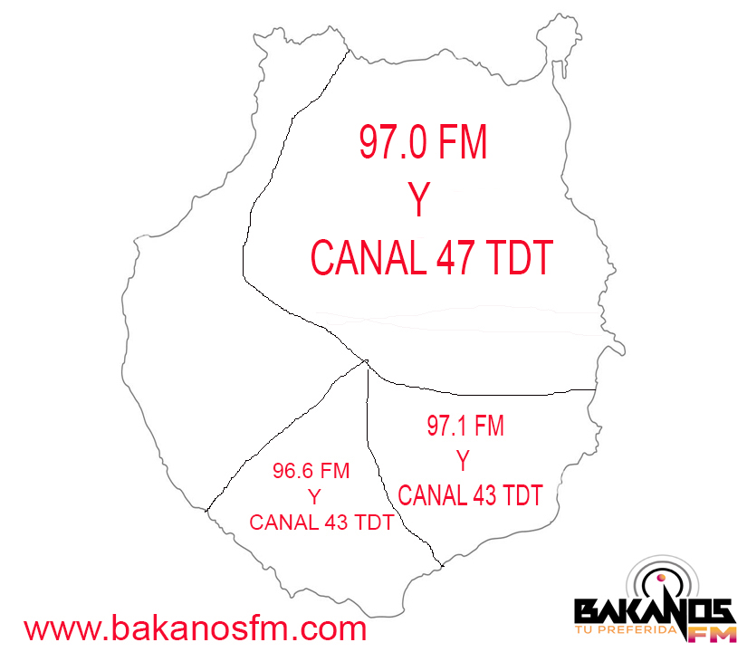 Bakanos fm, es nuestra emisora de radio, contamos con 3 señales en fm (97.0, 97.1 y 96.6) que nos permiten generar cobertura del 90% en toda la isla.